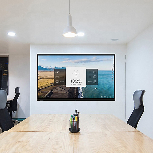 Tela LCD inteligente para sala de reuniões, painel digital inteligente interativo, tela multitoque de dedo de 65/75/86/100/110 polegadas, branco